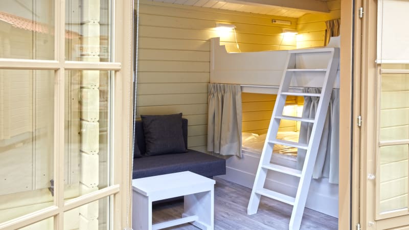 Le chalet de camping dispose de lits superposés avec deux lits doubles de 1,40 m x 2 m, matelas, couettes simples et oreillers inclus.