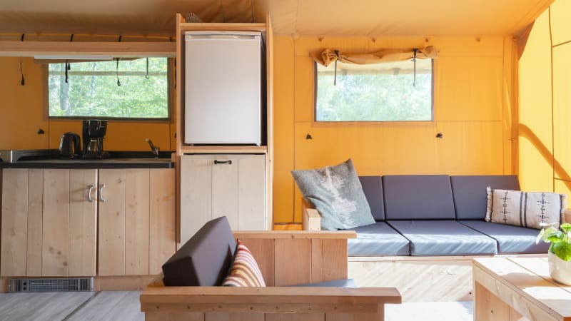 Vous voulez profiter de la Drenthe et du Dwingelderveld avec style ? Un séjour dans cette tente safari robuste, équipée pour 5 personnes, est une expérience unique ! Sentez-vous comme chez vous dans cet intérieur convivial, équipé de tout le confort de base.