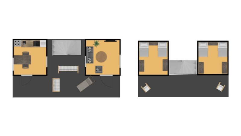 Nouveau dans notre parc ! Séjournez dans cet hébergement exceptionnel et profitez de tout l'espace extérieur. Les 2 chambres se trouvent au premier étage avec une vue unique sur les bois.