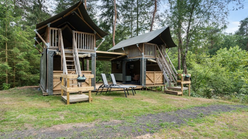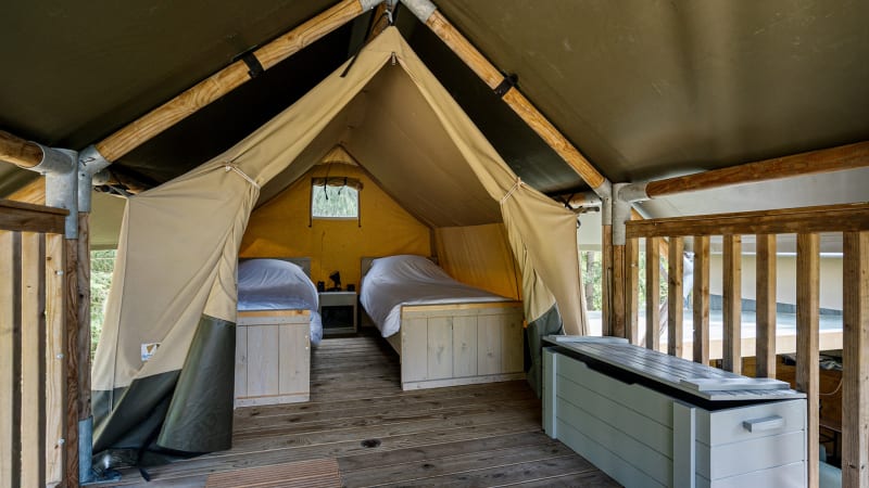 La tente safari ne dispose pas de sanitaires privés. Cependant, le bloc sanitaire commun se trouve à proximité. Vous pouvez y utiliser les douches et les toilettes. Extérieur