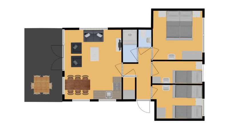 Chambre Il y a trois chambres. Toutes les chambres disposent de deux lits boxspring simples. Chaque lit est équipé d’une couette individuelle. Compte tenu de l’espace, l’ajout d’un lit bébé n’est possible que si toutes les chambres ne sont pas utilisées.