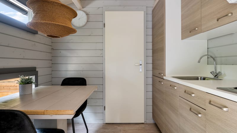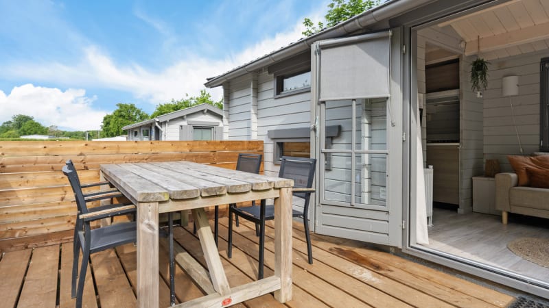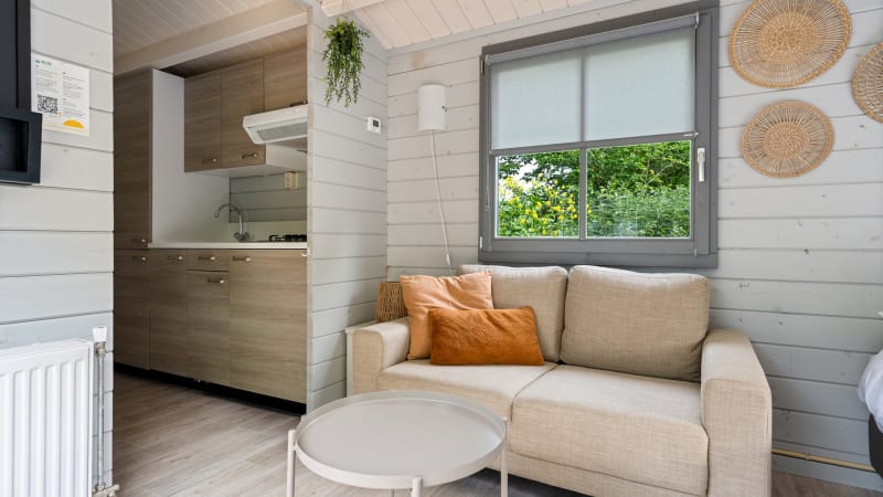Salon Le chalet dispose de portes-fenêtres donnant sur la terrasse et d'un coin salon avec un canapé. Tout se trouve dans une seule pièce, à l'exception de la salle de bains. Le chalet est équipé d'un chauffage central (avec radiateurs), ce qui vous assure confort et chaleur même en hiver.