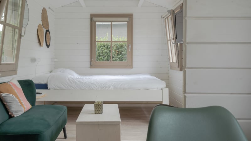 Ce type d’hébergement est non-fumeur et les animaux y sont acceptés. Ces dix chalets de camping sont nouvellement installés en 2023, tous ensemble sur l’ancien terrain « Muizenveld ». Un grand bloc sanitaire est situé juste à côté de ce terrain.