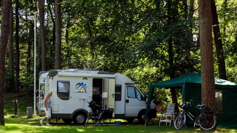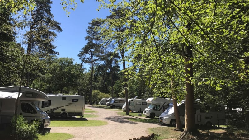 Les emplacements pour camping-cars, qui font environ 100 m2, sont aménagés sur un sol en dur dans l’allée Eksterlaan.