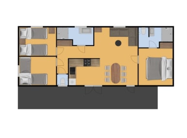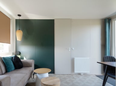 Nous louons divers modèles de bungalows de différentes tailles. Le RCN de Jagerstee propose des bungalows pour deux personnes, ce qui ne vous fait pas trop cher pour une sortie en couple. Les chalets situés au milieu du parc peuvent recevoir quatre ou six personnes. Ce type de chalet comprend une cuisine ouverte, un confortable coin salon avec télévision à écran plat et une cheminée.