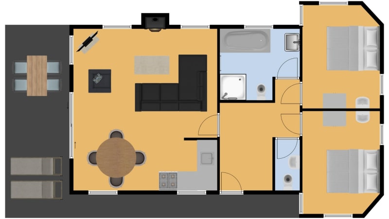 Dans ce luxueux bungalow indépendant, vous profiterez tous les quatre, tout au long de l'année, de vacances merveilleuses au cœur de la nature de la Veluwe. Le bungalow a été entièrement rénové et doté de tous les équipements :