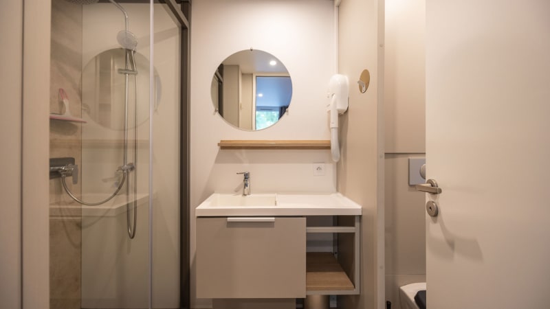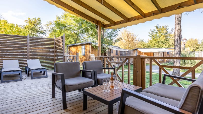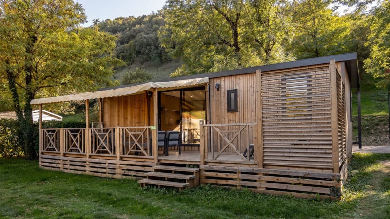 Midden in de prachtige Franse natuur staat deze XXL, luxueus ingerichte, vrijstaande mobil home. De ruime en luxe mobil home is geschikt voor zes personen en staat op een mooie plek met uitzicht op de camping.