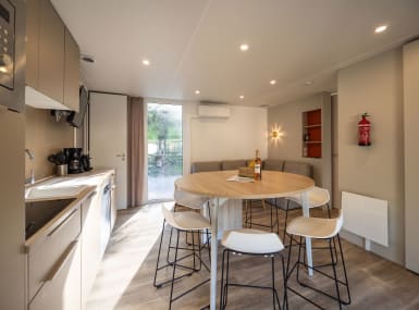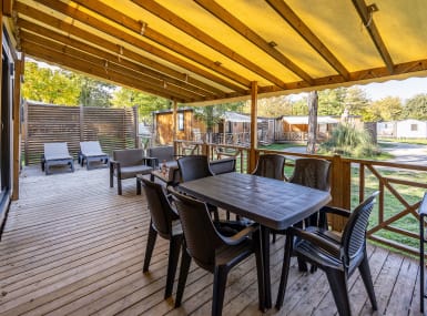 De veranda's zijn deels overdekt; voor zowel zonaanbidders als schaduwliefhebbers is het er dus prima toeven. De caravans zijn te boeken voor vier tot zes personen en verschillen van elkaar in luxe. Het meest royale model is geschikt voor zes personen en heeft een extra badkamer aan de grote slaapruimte. De keuken is uitgerust met allerlei extra's, waaronder een oven en een afwasmachine.
