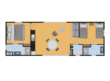Geniet een vakantie in de openlucht met luxe en kies voor onze safaritenten. In een avontuurlijke safaritent beschik je over comfortabele bedden, een basic open keuken, een eigen koelkast met vriezer en een eettafel set.