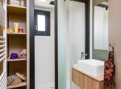 Een stacaravan huur je voor vier tot zes personen. Alle caravans hebben een open keuken, apart sanitair en een terras. Verder verschillen de typen in luxe en voorzieningen. Een van de meest riante modellen heeft een extra zonneterras op het dak. Alle chalets en stacaravans beschikken over een elektrische verwarming, voor als het ’s avonds afkoelt.