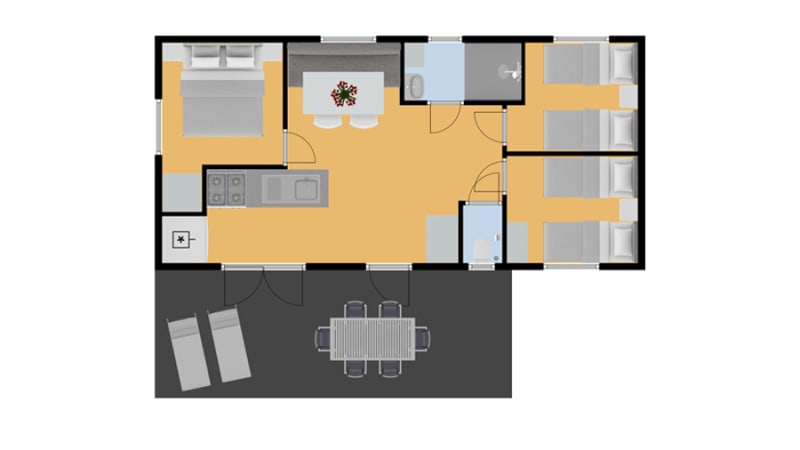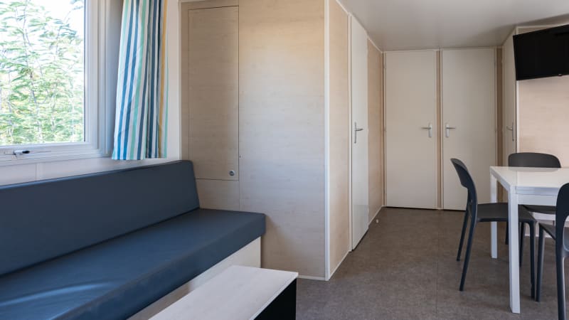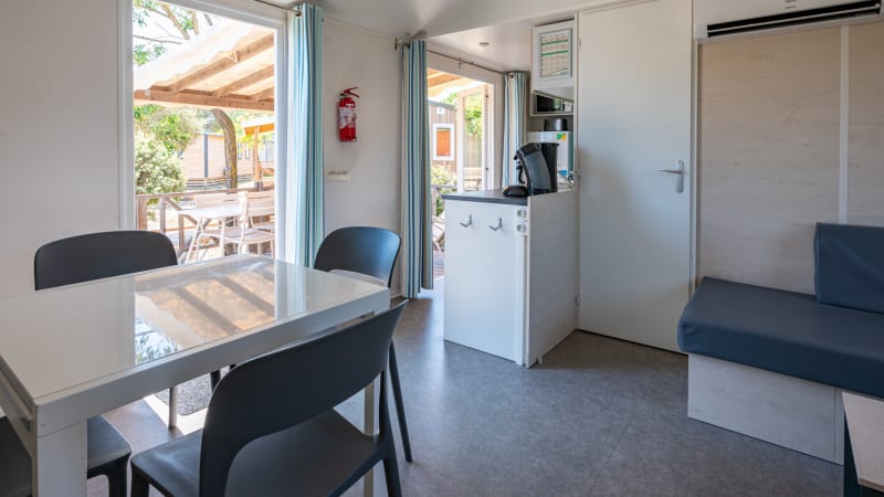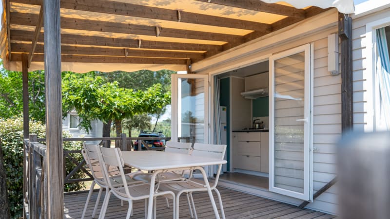 Deze modern ingerichte en vrijstaande zespersoons mobil home mét airconditioning is van alle basisgemakken voorzien. Ideaal voor jouw vakantie midden in de prachtige Franse natuur vlak bij de bekende Roquebrune. De mobil homes zijn voorzien van airco.
