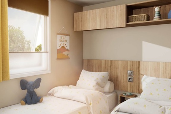 De Lilas is een ruim opgezet model dat ideaal is voor gezinnen of wanneer je regelmatig gasten ontvangt op je jaarplaats. Met drie comfortabele slaapkamers biedt dit chalet alle ruimte die je nodig hebt.