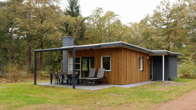 Buiten Het terras met overkapping en de tuin op het zuiden zijn ruim en bieden veel privacy. Vanaf het terras, met comfortabel tuinmeubilair, kun je genieten van al het groen en de bosdieren om je heen. De auto kun je bij de bungalow parkeren.