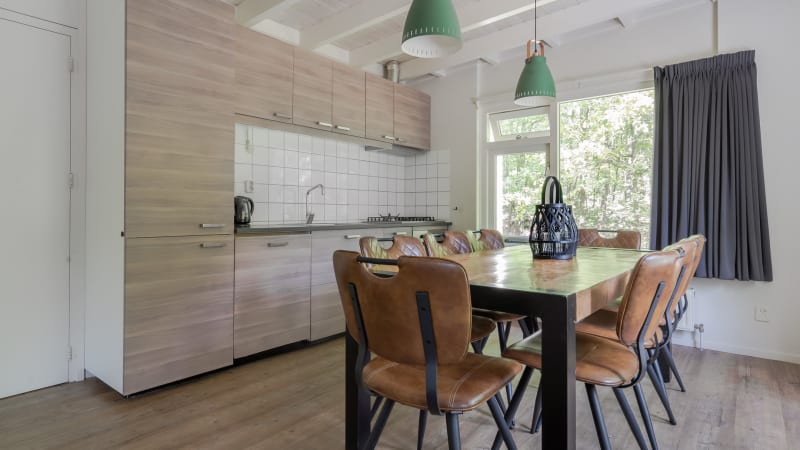 Keuken De open keuken heeft een 4-pits gaskookplaat, volledige keukeninventaris, grote koelkast met vriesvak, filter koffiezetapparaat, Nespresso apparaat, waterkoker, vaatwasser en een oven met diverse functies. Er is een gezellige eethoek voor acht personen.