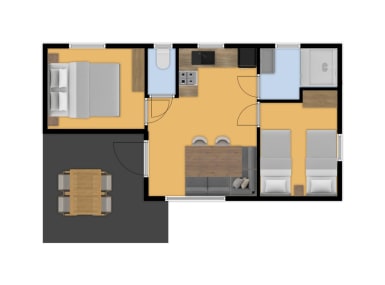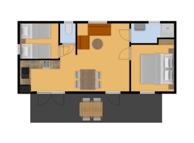 Als je op zoek bent naar alle gemakken van thuis, dan zijn onze ruime chalets met zuidelijk gelegen terras iets voor jou. Ze zijn licht en vanuit de woonkamer en de open keuken heb je een prachtig uitzicht op het bos.