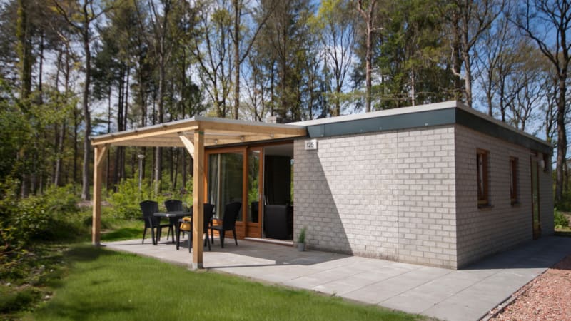 Buiten Vanuit de woonkamer heb je via de schuifpui direct toegang tot het terras. Het ruime terras is gelegen op het zuiden en heeft een overkapping zodat je ook bij iets minder weer toch lekker buiten kunt zitten. Hier kun je zelfs in het vroege voorjaar al lekker genieten van de zon. De auto kun je bij de bungalow parkeren.
