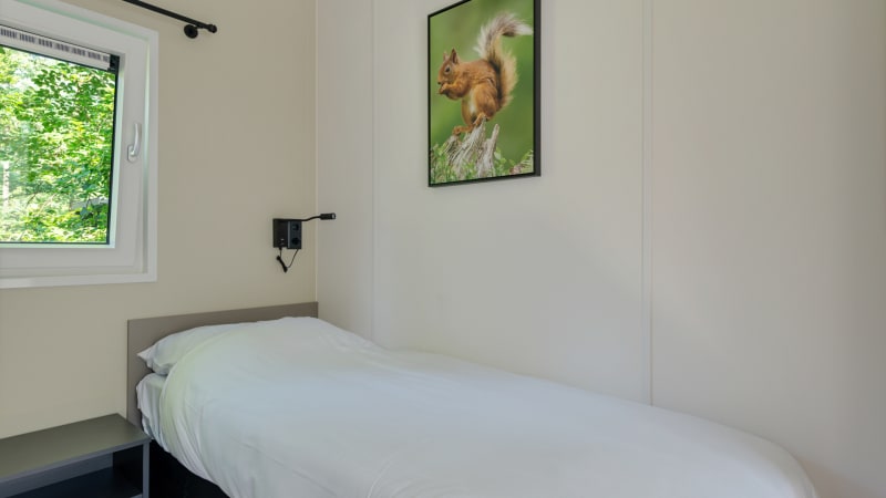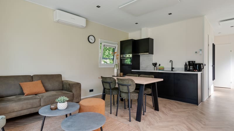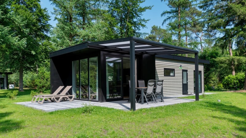 Dit moderne nieuwe chalet (2025) is geschikt voor 4 personen en voorzien van een deels overdekt terras met modern terrasmeubilair. De royale master-bedroom heeft een grote garderobbekast.