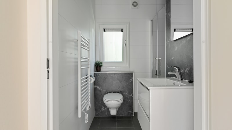 Badkamer De badkamer is uitgerust met een wastafel, een inloopdouche met sunshower en een toilet.