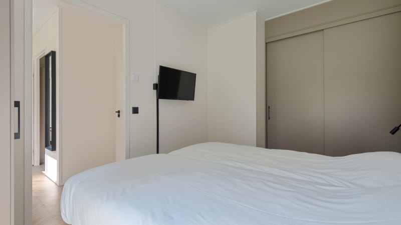 Slaapkamer De grootste slaapkamer is ruim en voorzien van een groot bed en een kast met voldoende opbergruimte. De tweede slaapkamer is geschikt voor extra gasten of kinderen. De kamer is praktisch ingedeeld en biedt een comfortabele slaapplek voor een aangenaam verblijf.
