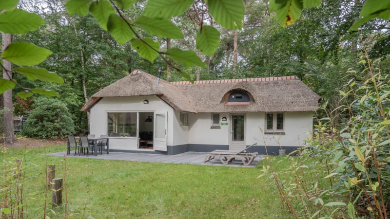 Buiten De vrijstaande veranda is voorzien van tuinmeubilair voor vijf personen. Op het terras staan twee verstelbare ligbedden. De auto kun je bij de bungalow parkeren.