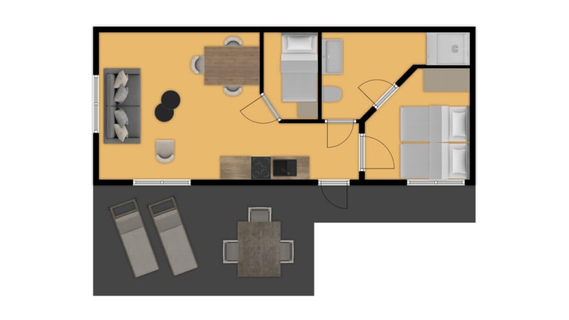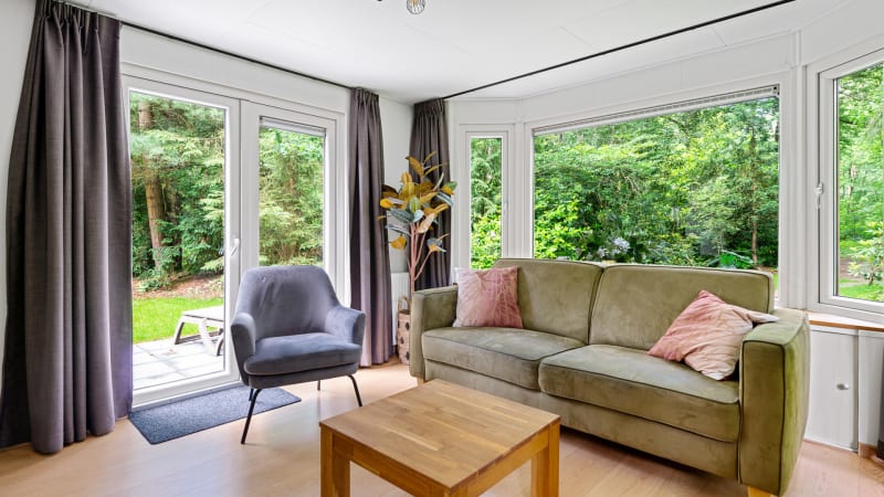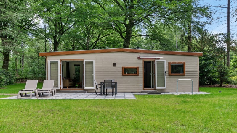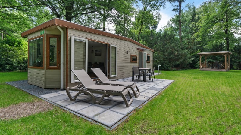 Dit comfortabele chalet bevindt zich op een royale en zeer rustige locatie in het park. Met twee terrassen, waarvan één overdekt, geniet je optimaal van de buitenruimte. Het chalet is geschikt voor 3 personen.