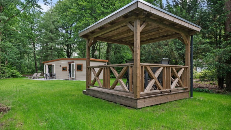 Buiten Geniet van de rust en ruimte op de twee terrassen, waarvan één overdekt. Het chalet beschikt over tuinmeubilair en twee ligbedden.
