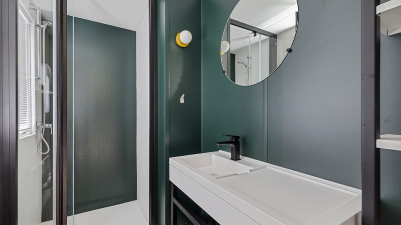 Badkamer Er is een badkamer, met wastafel en douchecabine. Er is een apart toilet aanwezig.
