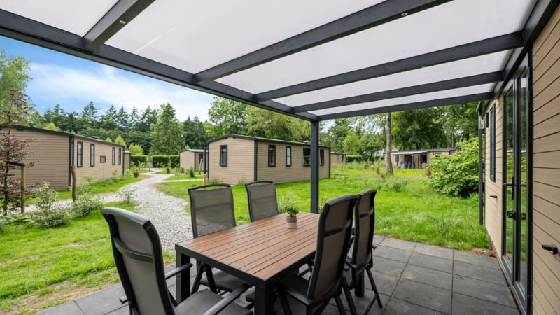 Buiten Geniet van de buitenlucht op het overdekte terras. Je auto kun je parkeren op de dichtstbijzijnde parkeerplaats.