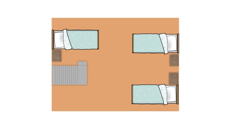 Beneden vind je een slaapkamer met tweepersoonsbed en op de zolderverdieping staan er 3 eenpersoonsbedden.